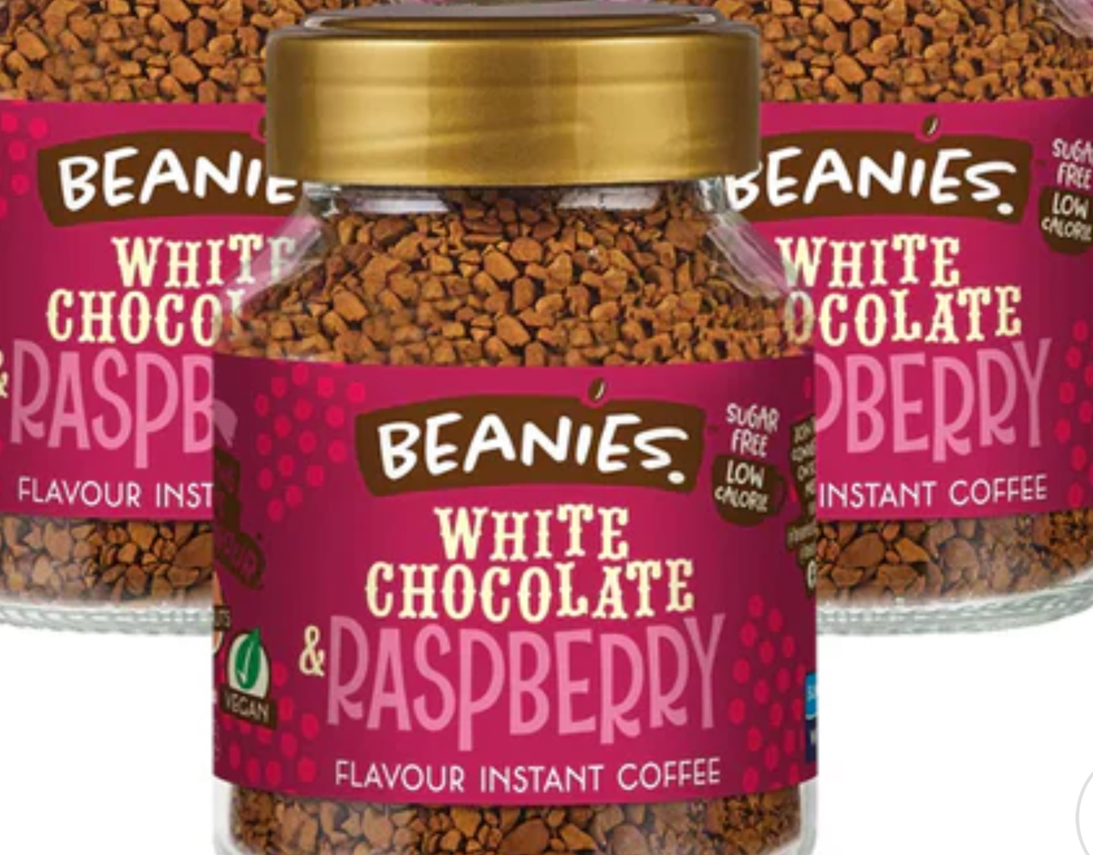6x Beanie Flavoured Coffee White Chocolate & Raspberry Includes Postage