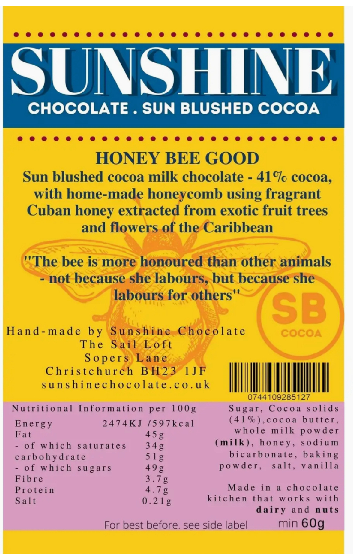 Honey Bee Good Honeycombe Milk Chocolate Made By Sunshine Chocolate