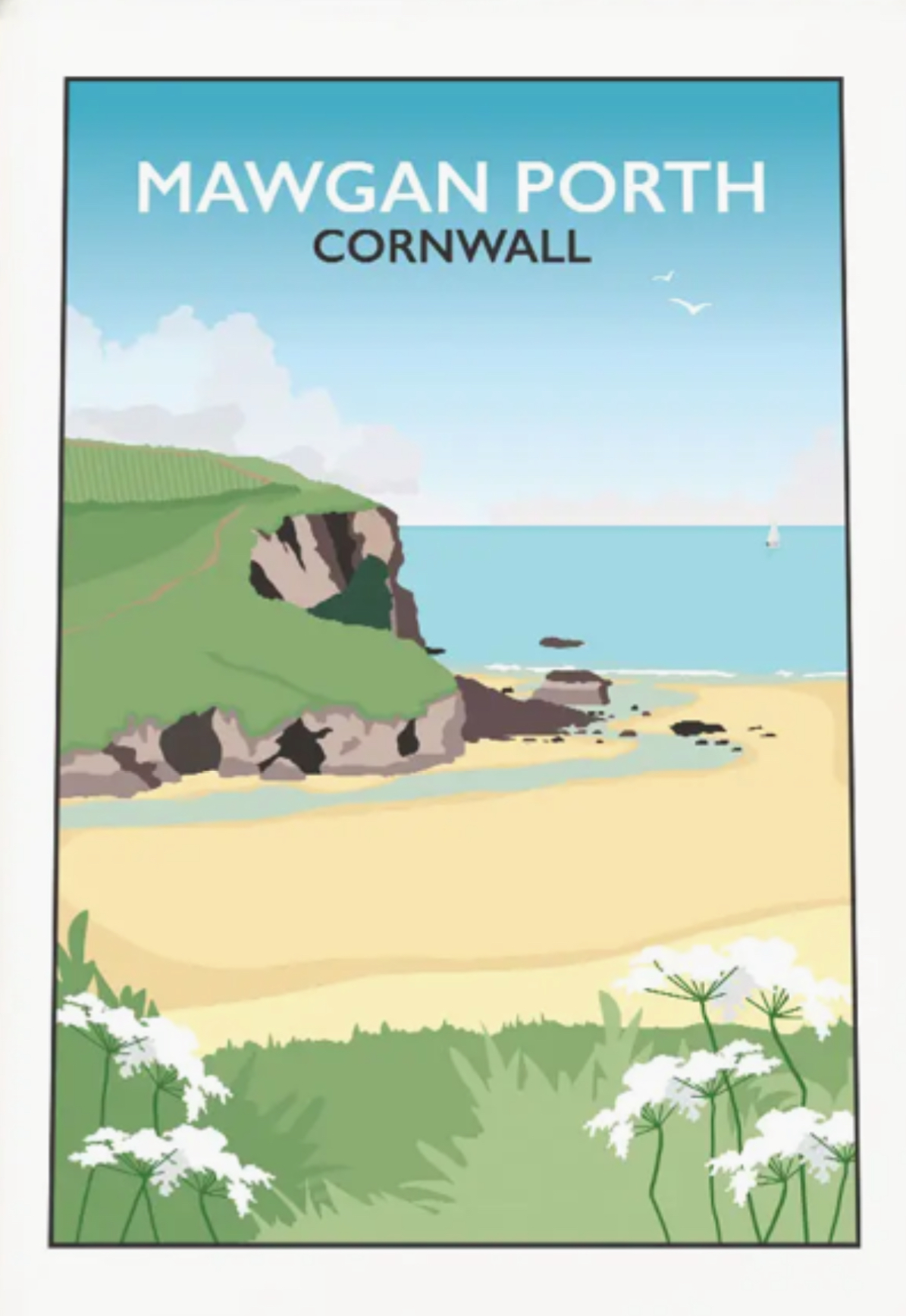 Mawgan Porth Cornwall Mounted Art Print 40x50cm By Artist Tabitha Mary Seller 368