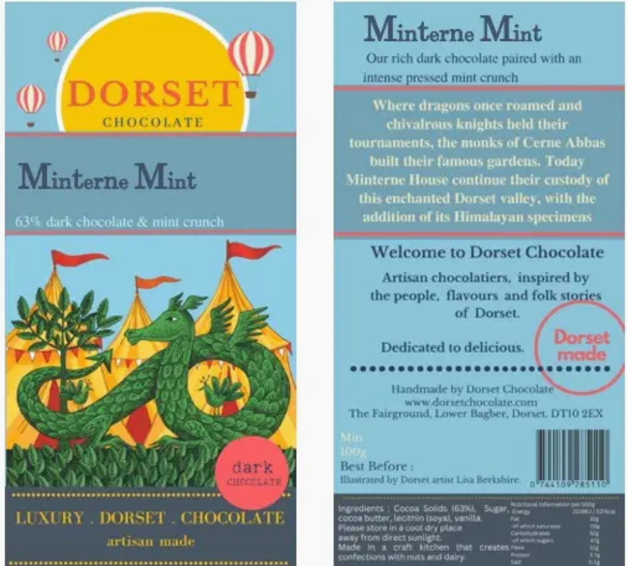 Minterne Mint Dark Chocolate with Intense Mint Crunch Choc Bar Made By Dorset Chocolate