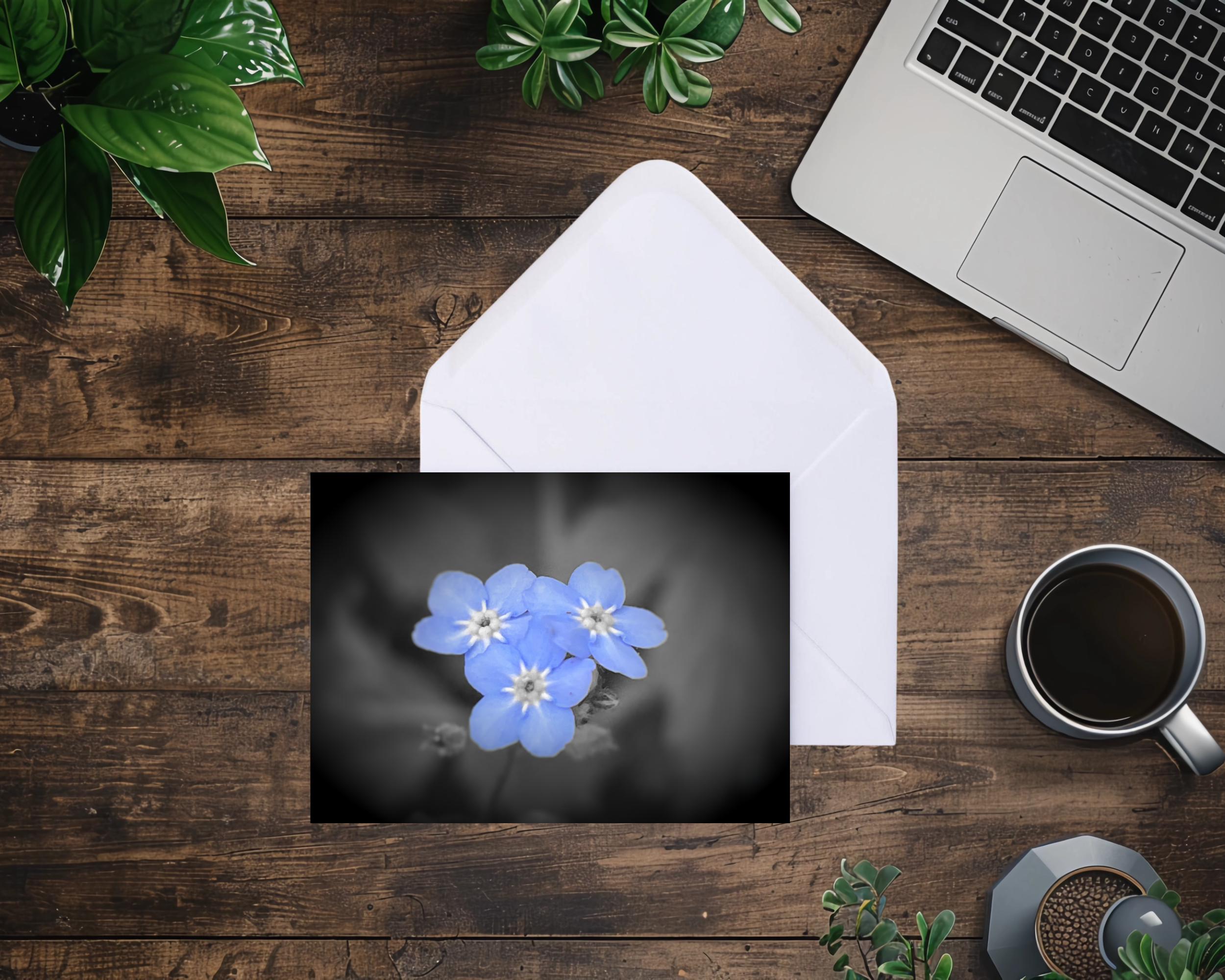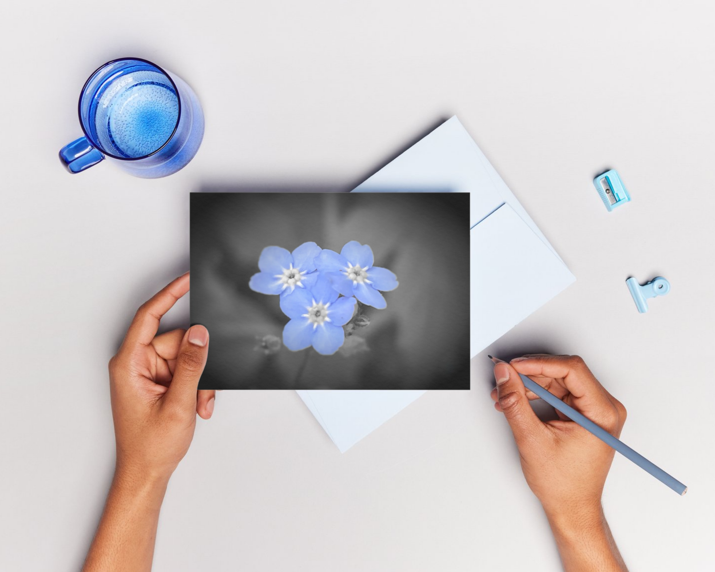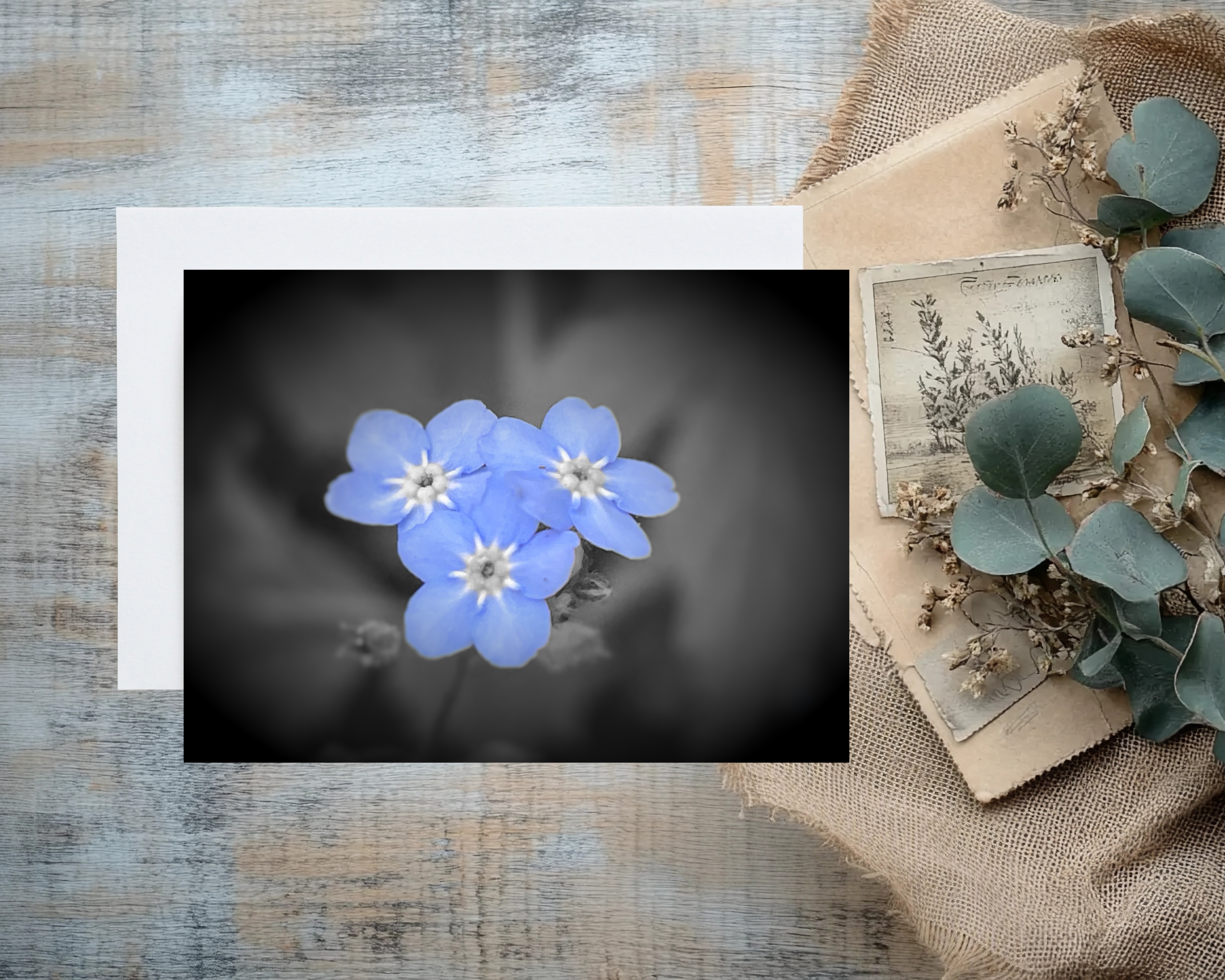 Pack of 2 A5 Blank Greeting Cards of Forget Me Not Flowers comes with envelope