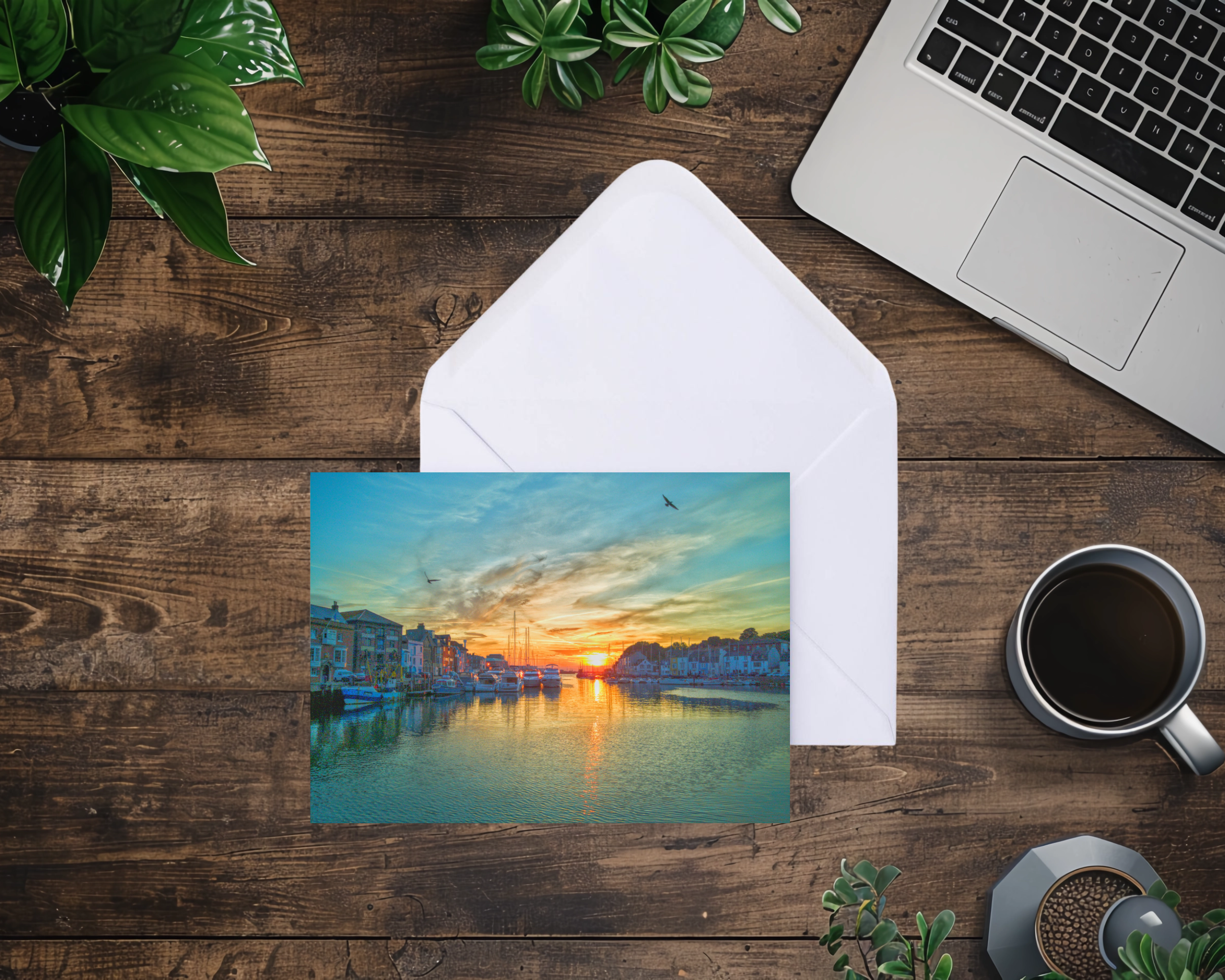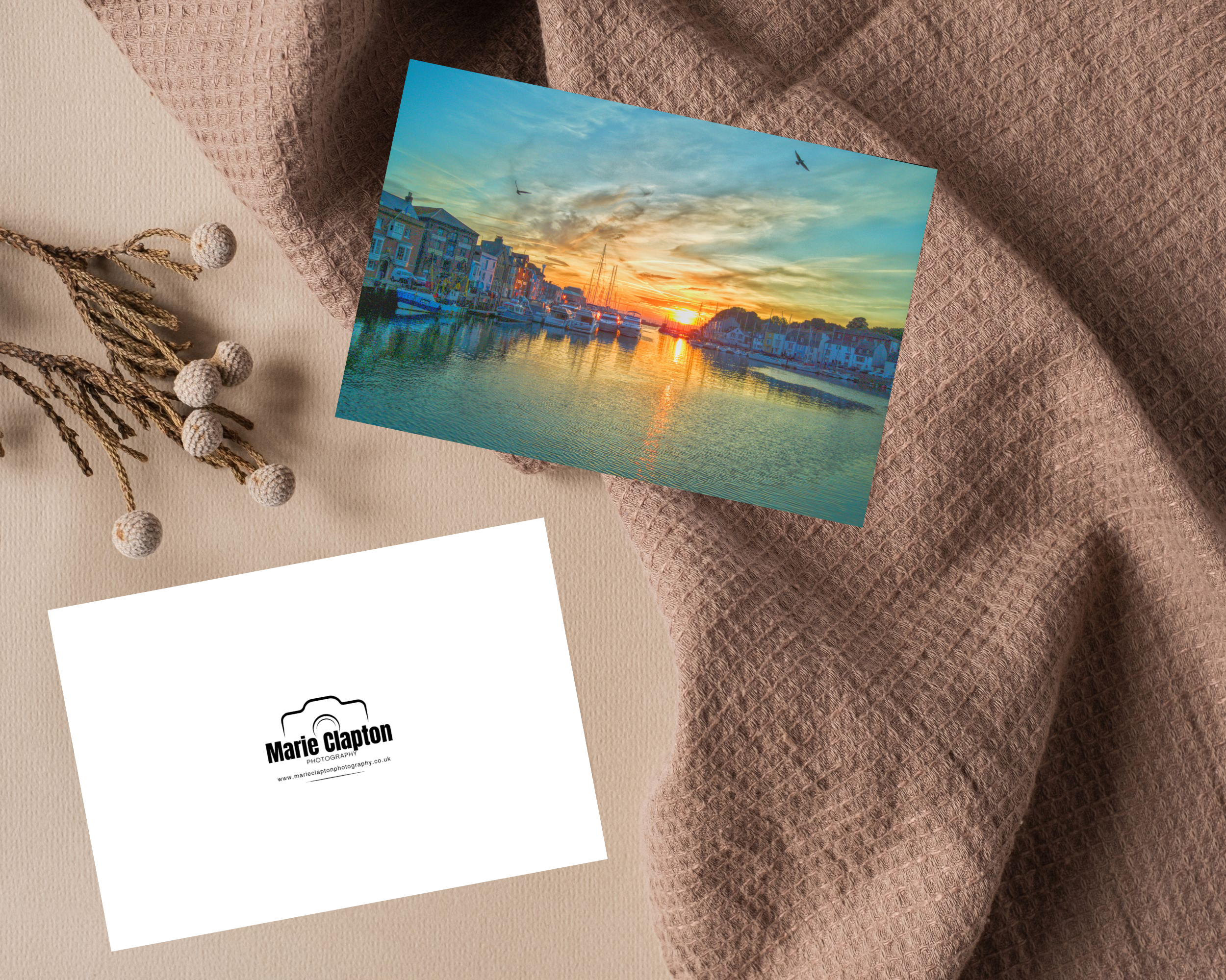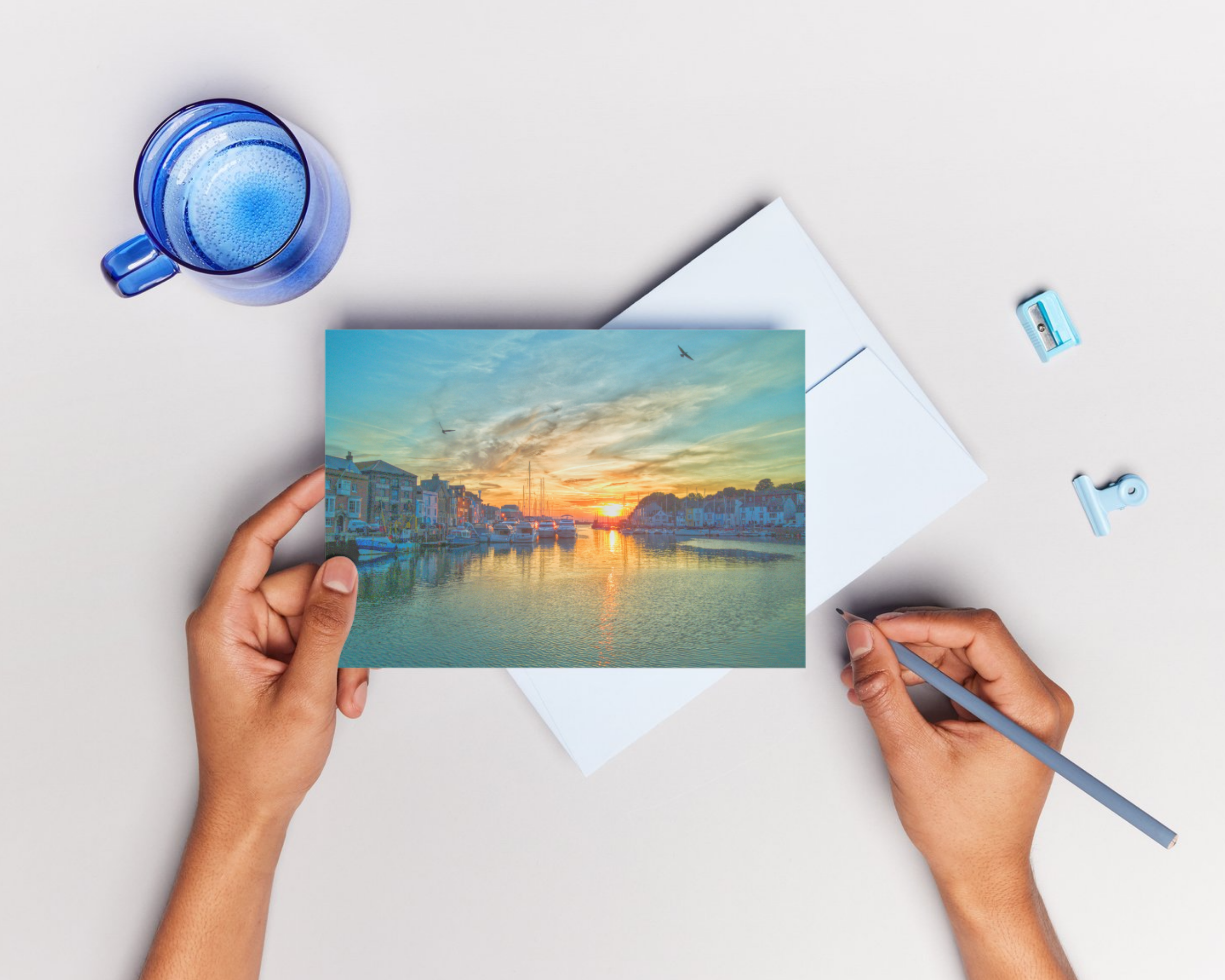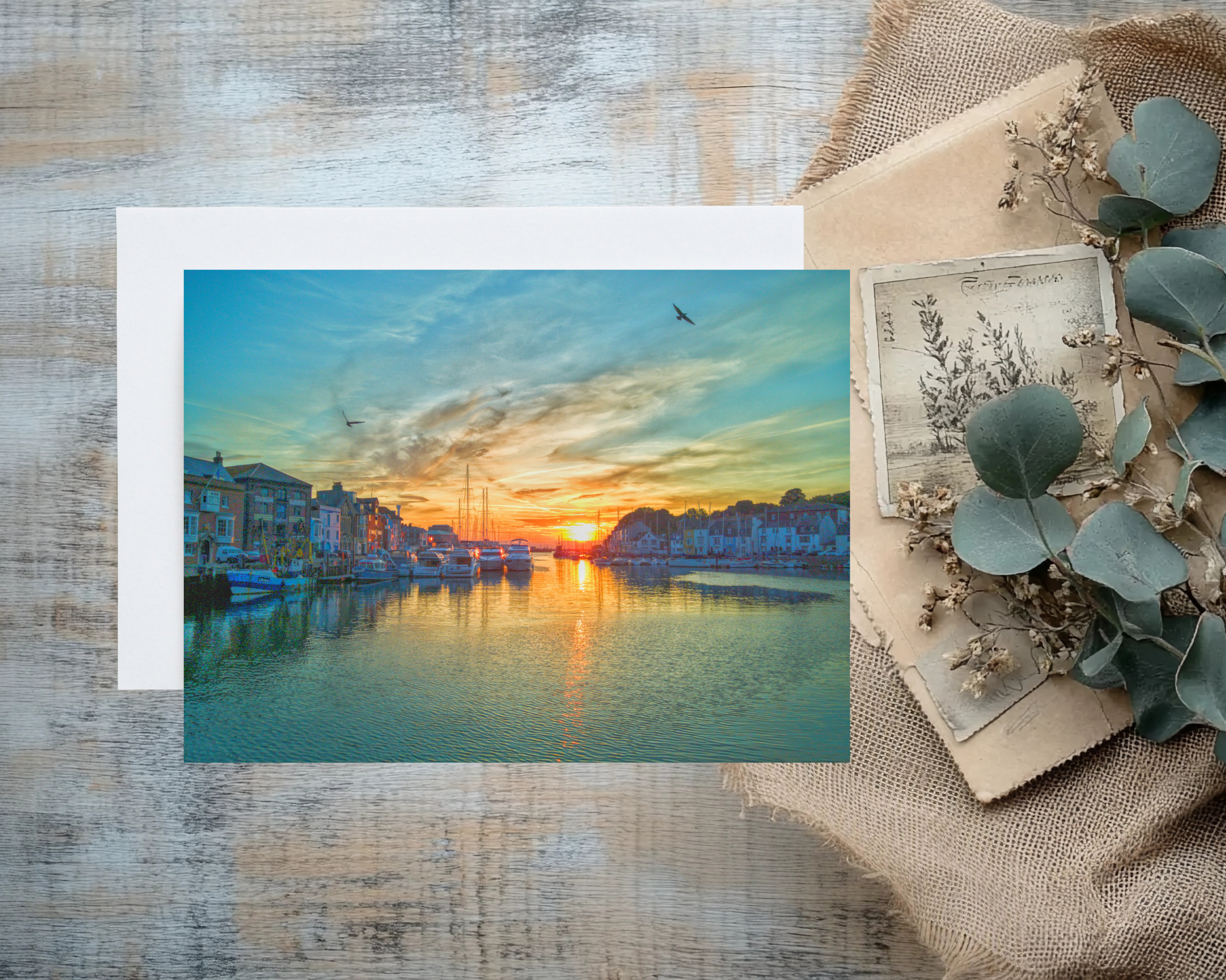 Pack of 2 A5 Blank Greeting Cards of Weymouth Harbour Sunrise Dorset comes with envelope