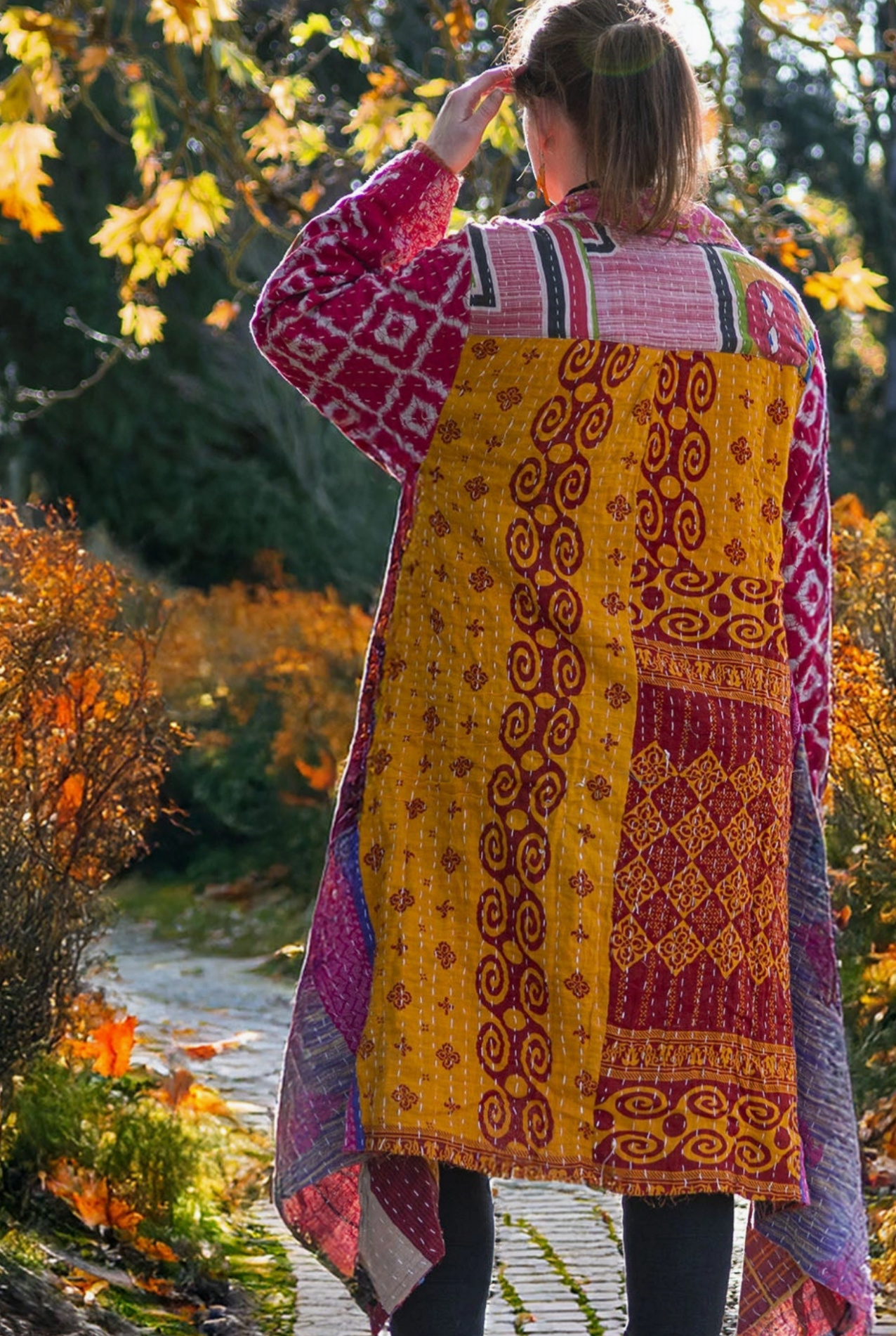 Random Colour And Design Kantha Reversible Jacket - Every One Is Different