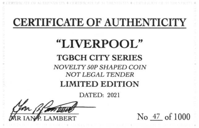 RARE ORIGINAL LIVERPOOL, TGBCH CITY SERIES WITH COA OF 1000