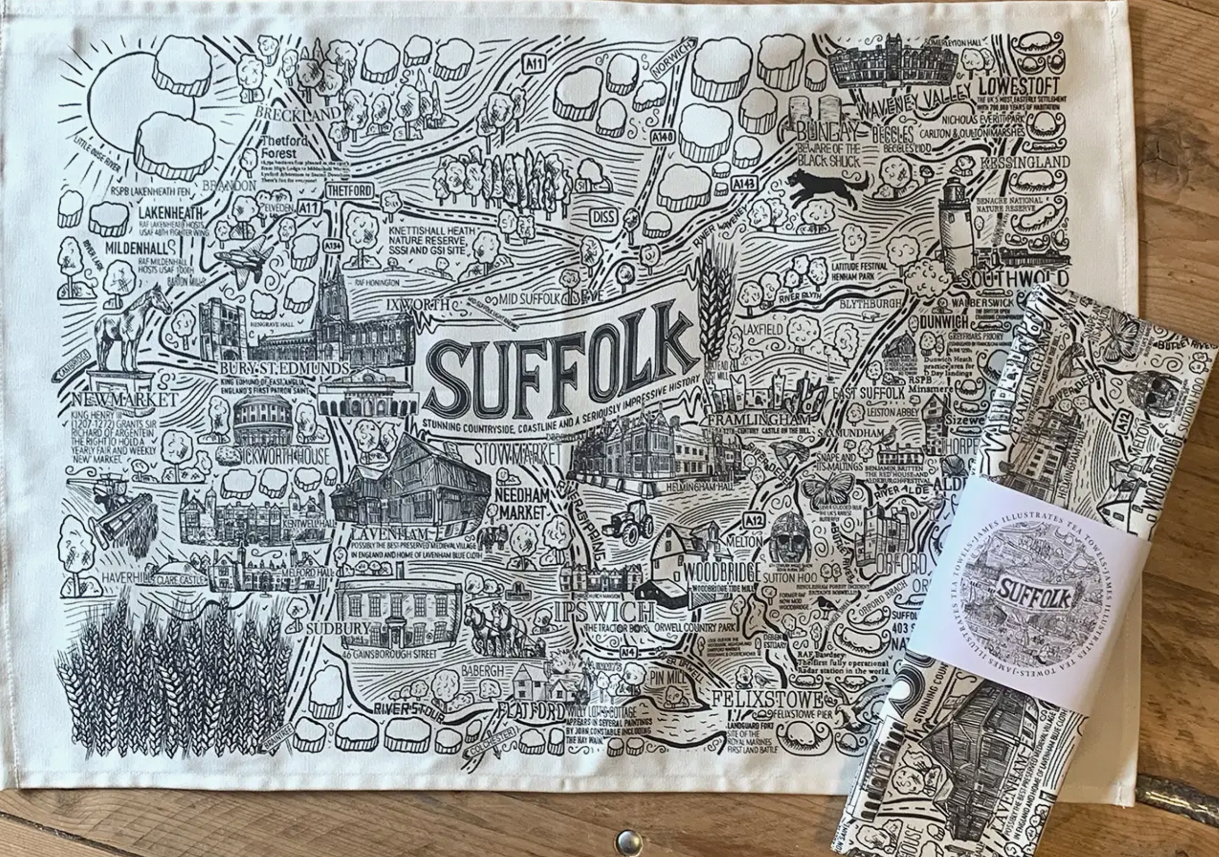 Suffolk Heavy Cotton T Towel Hand Drawn Map By James Illustrates