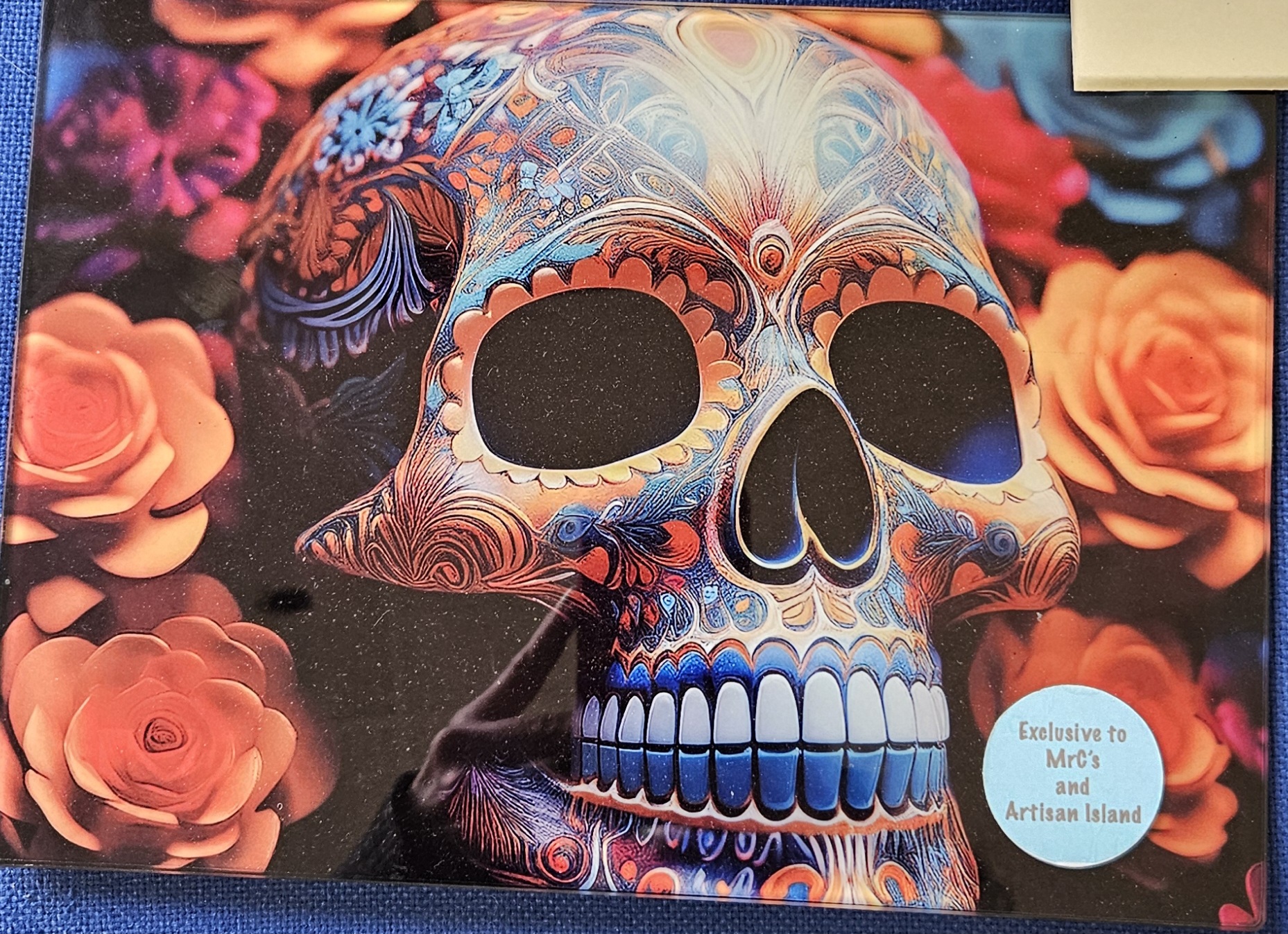 Tattooed skull Glass Chopping Board Leaded Light Seller 290 + Free Stand