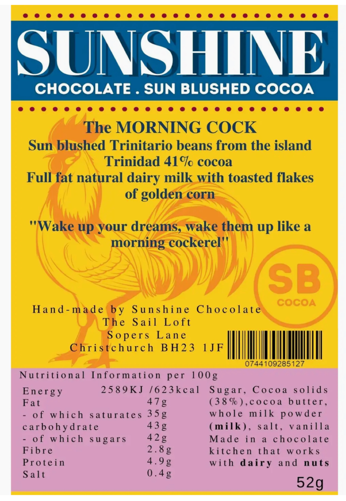 The Morning Cock Full Cream Milk & Toasted Morning Flakes Made Sunshine Chocolate