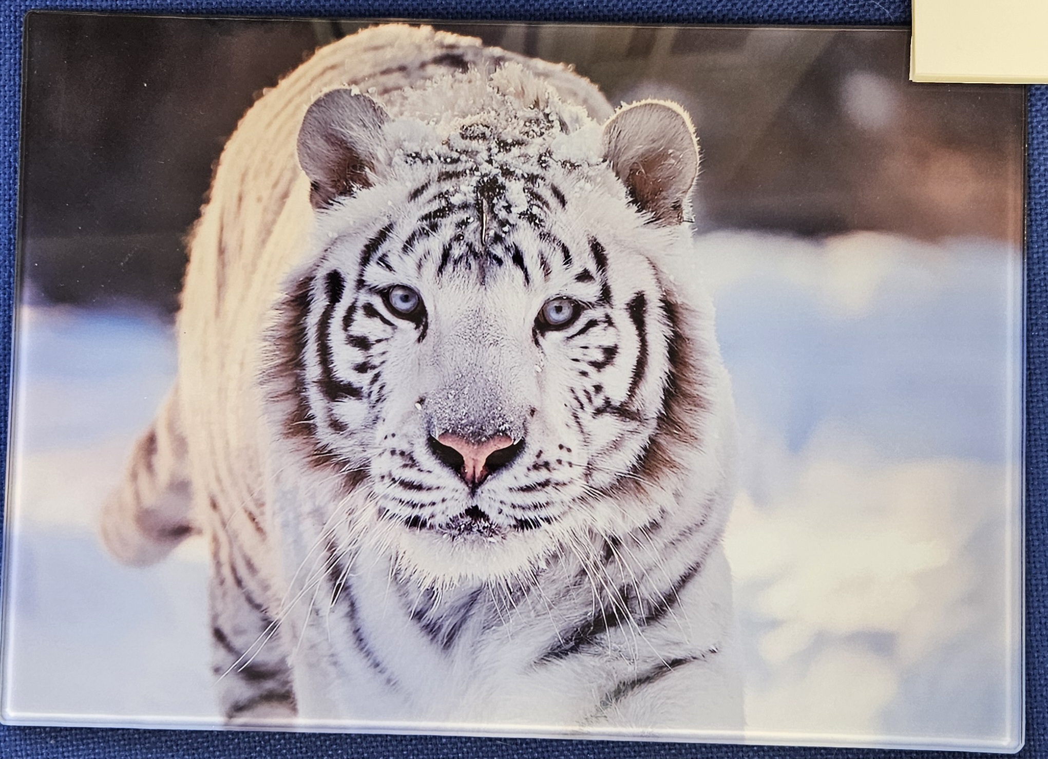 White tiger Glass Chopping Board Leaded Light Seller 290 + Free Stand